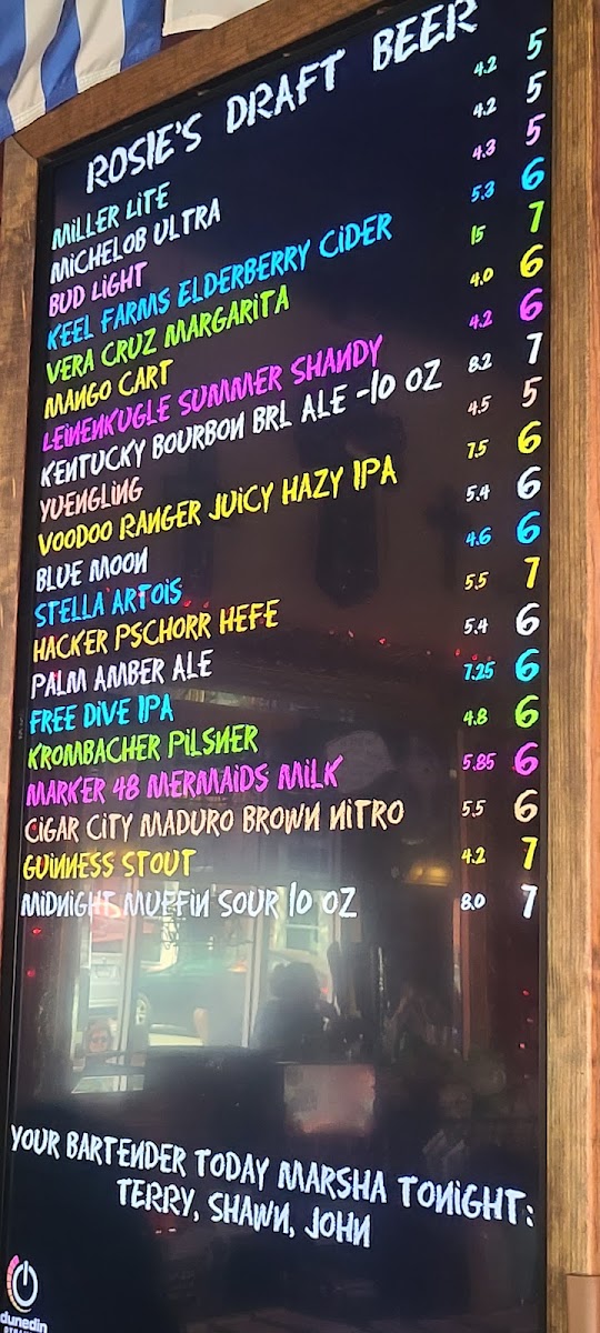 Rosie's Tavern of Dunedin offers a relaxed, approachable menu that pairs well with its cozy, friendly atmosphere. The selection centers around casual bites and comforting drinks that invite you to linger and enjoy the moment, whether you're catching up with friends or seeking a quiet spot to unwind.